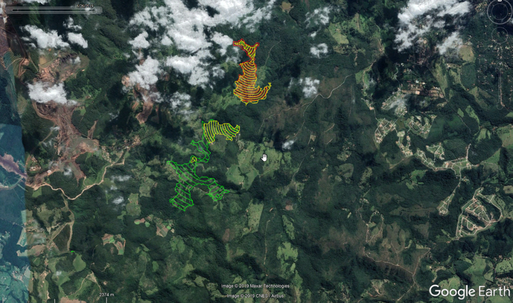 Once some runout modelling has been done, aside from sharing results in Muk3D and through screencaptures, its possible to export the runout surfaces to Google Earth as KML files.