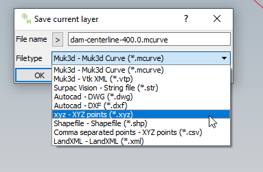 To save a point cloud or line data to XYZ text files, simply save the layer and change the filetype to be either XYZ or CSV.