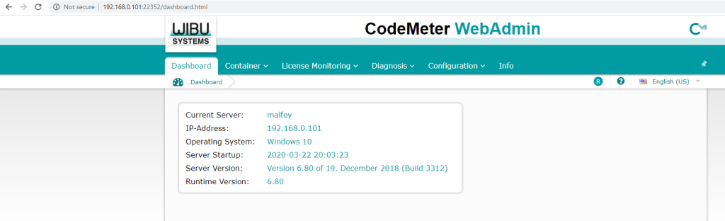 This will bring up the CodeMeter WebAdmin page on the server.